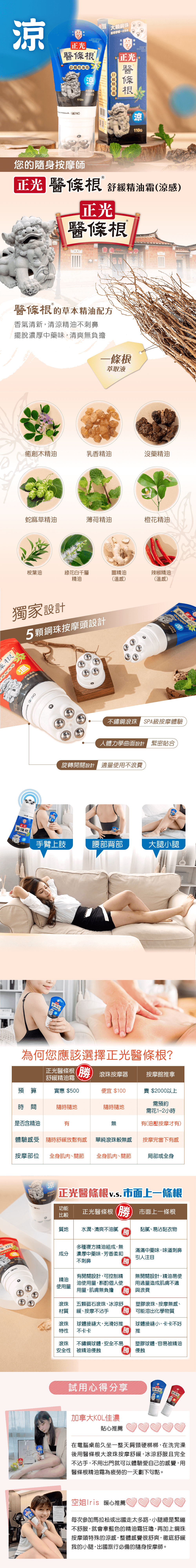 | 商品名稱 | 正光醫條根舒緩精油霜(涼感) |