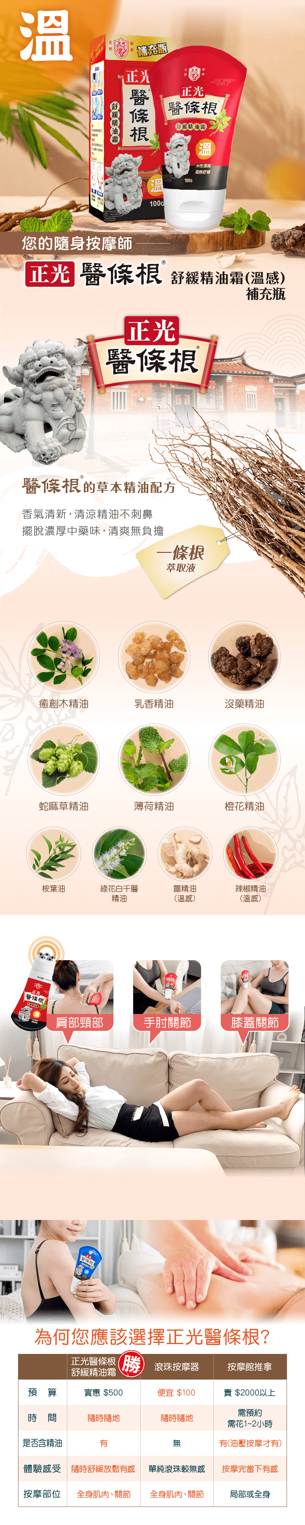 | 商品名稱 | 正光醫條根舒緩精油霜補充瓶(溫感) |