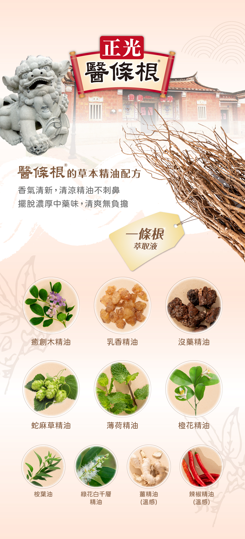 | 產品成分 | 一條根萃取液、癒創木精油、乳香精油、沒藥精油、蛇麻草精油、薄荷精油、橙花精油、桉葉油、綠花白千層精油、乳霜基劑。 | |
