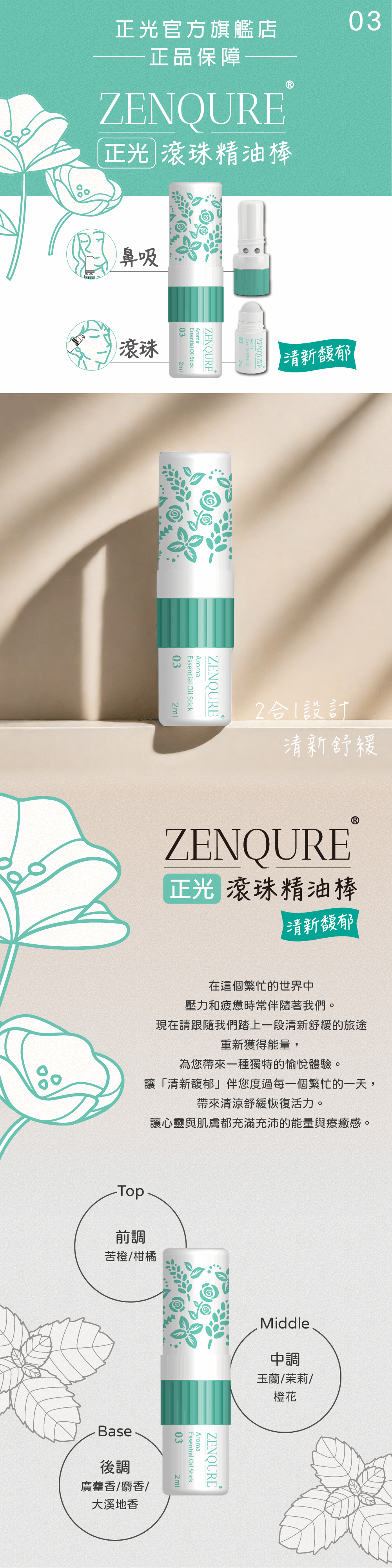 | 商品名稱 | ZENQURE 正光滾珠精油棒 3號 |