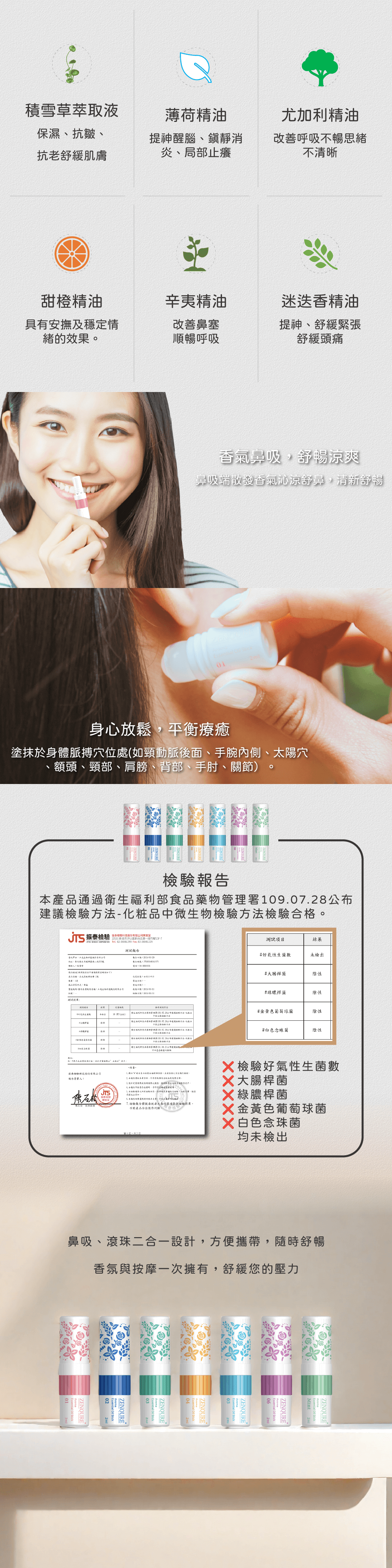 | 產品成分 | 薄荷精油、尤加利精油、迷迭香精油、辛夷精油、橙香精油、積雪草萃取液、薄荷腦、樟腦、香精 |